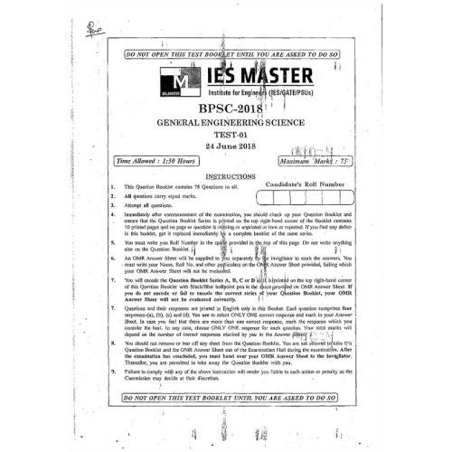 BPSC TEST SERIES WITH SOLUTION 2018 (IES MASTER)