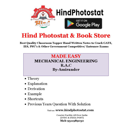 Refrigeration- Air Condition   MADE EASY CLASS NOTES for IES GATE PSUsThey are the latest notes of MECHANICAL  ENGINEERING. By-Amrinder Sir MADE EASY. They are sourced from current student. They are very well wriiten in clear hand writting and print quality is awesome.-This booklet is useful for IES, Gate, PSU Exams.
